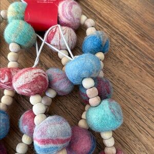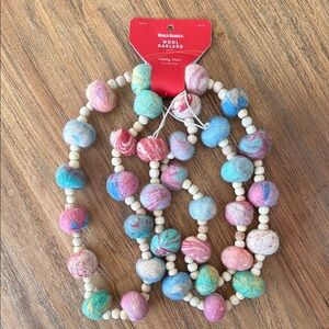 NWT World Market Colorful Marbled Wool Felt Ball & Natural Wood Bead Garland