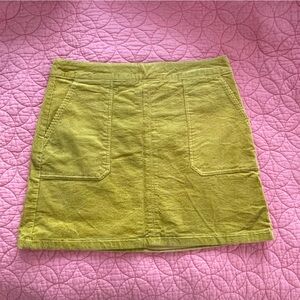 Boden, marigold yellow corduroy mini skirt with front porkchop pockets and back welt pockets. Center back zipper opening with inner tab with button.