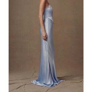 NEW NWT Meshki Harlow Satin Strapless Maxi Dress Cornflower Blue Medium