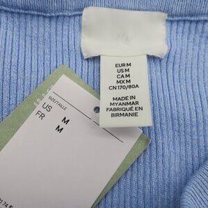 H&M Blue Ribbed Sweater Knit Midi Skirt Front Slit Bodycon Women's Medium NWT