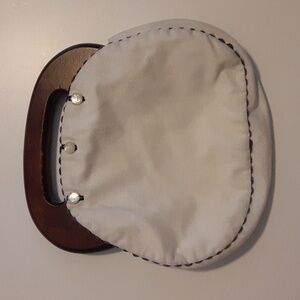 Authentic vintage Banner House purse with wooden handles and white and beige removable purse body.