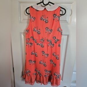 Sugarhill Boutique Coral Carousel Horse Dress Peter Pan Collar Size M Coquette