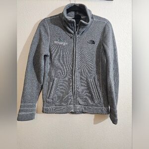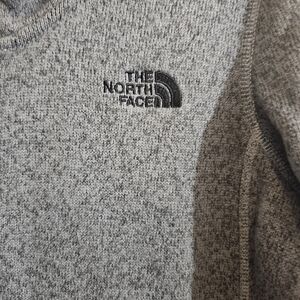 Cozy gray hoodie with full-zip design. Features The North Face logo. Ideal for cool weather.
