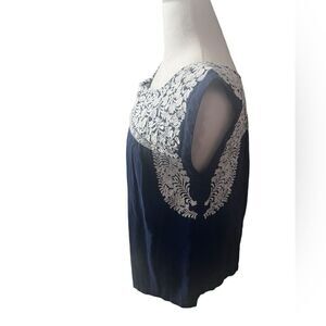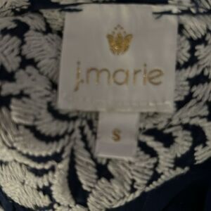 J.Marie small blue and white embroidered short sleeve shirt oversized
