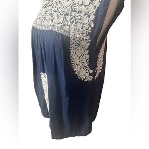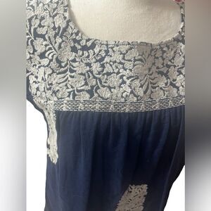 Beautiful embroidered shirt blue with white embroidery all over it shown in photos original cost around $200