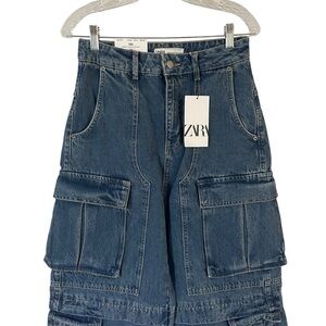 NWT Zara Relaxed Fit Multi Pocket Cargo Jeans Size 34
