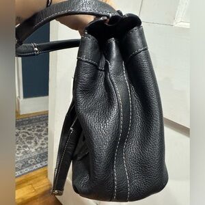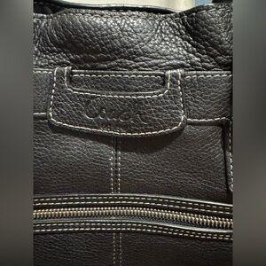 Elegant black leather handbag perfect for any occasion. Features durable handles and stylish design.