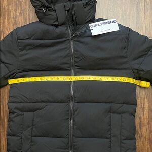 Brand new with tags. Gorgeous and warm puffer coat by ethical designer Girlfriend Collective. Measurements shown in photos. A few tiny pulls and some light wear, see pics. Any questions please ask! Thanks for looking:)
