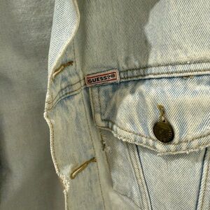 Light denim jacket, vintage Guess Jeans brand. Has lots of character and well worn. Size medium