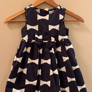Adorable navy and white bow dress with pink underskirt. Features bow at the waist in the front and zipper back. No stains or rips. So cute!