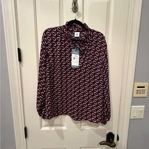 Elevate your wardrobe with this stylish patterned long sleeve top. Featuring a chic design in black and red, it's perfect for any occasion.