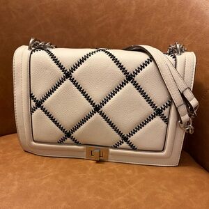 Elegant black crossbody bag. Features adjustable strap. Classic Louis Vuitton design.
