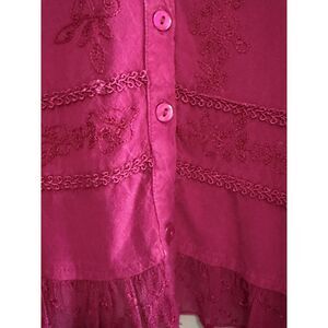 Catherines Asymmetric Tunic Blouse Embroidery Ruffle Pink V Neck Boho Western 3X