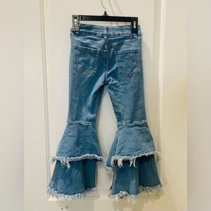 Great Condition! They’ll love to play it cool in these denim jeans styled with tiered, frayed wide legs for a fun, lived-in look.