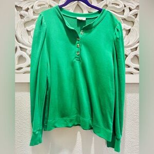 LOFT Vibrant Green Henley Sweatshirt