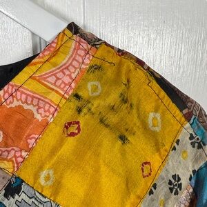 Sacred Threads Flowy Vintage Silk Patchwork Button-front Jacket Boho Top