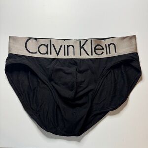 Calvin Klein Men's Steel Micro Hip Briefs in Black with Gray Waistband