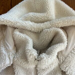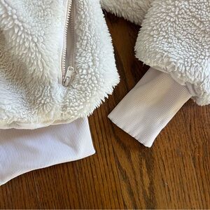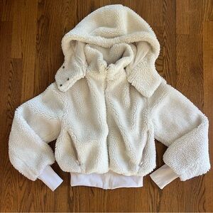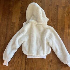 Alo foxy Sherpa jacket in ivory. Loved this so much I have it in almost every color! Size XS. Coat is in great condition. Has been washed (not dried) many times and washes very well. No stains that I could see. Because of age and washing, it’s not as bright as it was new. Dies not take away from his cute this is! Offering it at a lower cost because of this. Perfect way to try this jacket out before investing in all the colors like me!