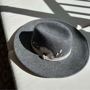 American Eagle Gray Wool Floral Embroidered Adjustable Fedora Hat