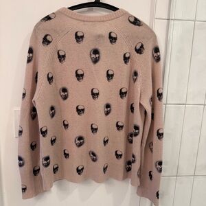 Elegant pink V-neck sweater. Features bold skull pattern. Soft cashmere. In good condition.
