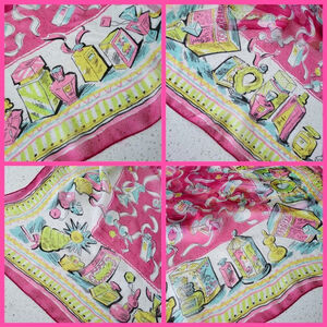 Vintage Perfume Bottle Print Sheer Scarf – Pink & Pastel Sheer Chiffon