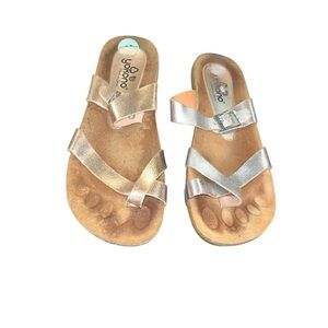 Yokono Ibiza 201 Metallic Silver Gold Leather Sandals Spain Womens Size 8