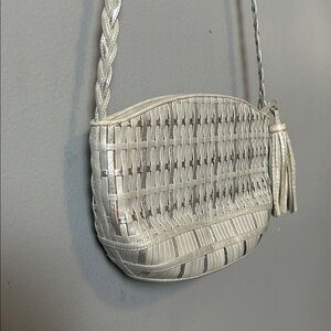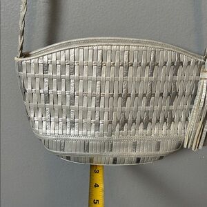 Vintage Metallic gray Sharif Silver Textured woven Crossbody Bag small