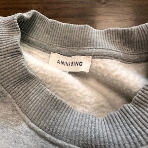 Chic gray sweatshirt by Anine Bing. Features bold red lettering. Ideal for casual wear.