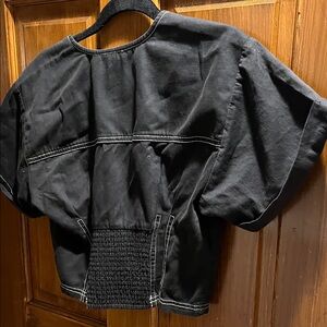 Pilcro Black Short Sleeve Blazer with Button Accents