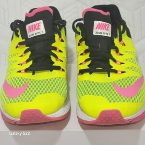 Keywords: Nike, Zoom Elite 7, Running Shoes, Sneakers, Athletic, Neon Yellow, Pink, Womens, Training, Fitness, Workout, Comfortable, Breathable, Sportswear
