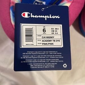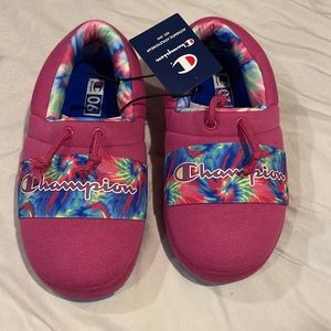 Comfortable and stylish slippers from Champion, perfect for keeping little feet cozy. Featuring a fun pink color with a vibrant tie-dye pattern across the strap, these slippers are sure to be a hit. The design includes a soft, cushioned footbed and a durable outsole. Ideal for sleepovers, lounging at home, or even quick trips outdoors.