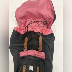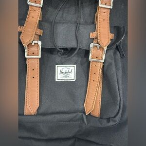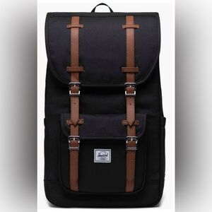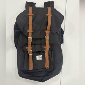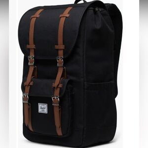 This is a Herschel Supply Co. Little America Backpack in black. It features an iconic mountaineering style and is built with durable EcoSystem recycled fabrics. Key features include: Almost new . No flaws