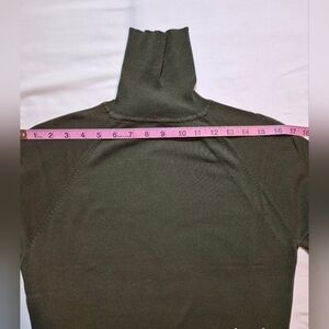 Style Tip: Pair this olive turtleneck with your tan leather skirt for a sophisticated, earthy autumn look, or style it with dark denim and a blazer for casual Friday