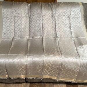 Louis Vuitton Silk monogram Shawl in Greige. From the 2018 Collection. Monogram Shine Motif LV Monogram Featuring Raw Edges. Beautiful large shawl.