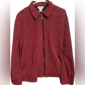 🍄Vintage Alfred Dunner Red & Black “Sparkle Knit” Zip-Up Jacket