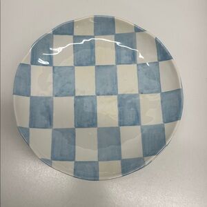 Blue White Checkered Melamine Round 6.5" Desert Plates Indoor Outdoor Set of 6