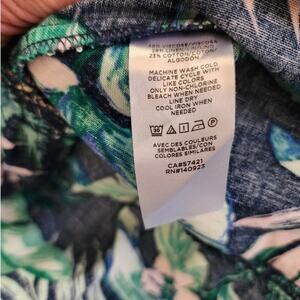 The dress features a lovely blue floral and leaf print, giving it a tropical and boho vibe. The tiered design adds a touch of elegance and sophistication. It's a size large and is in very good condition.
