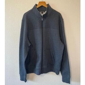 Michael Kors Minimalist Men’s Collared Full Zip Ribbed Navy Blue Cozy Sweatshirt XL