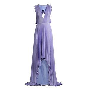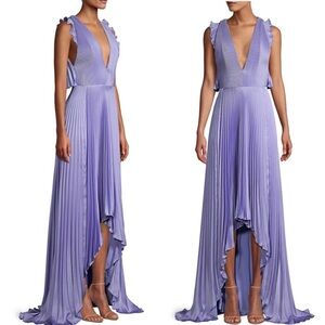 NEW! Flor et. al James Pleated Satin Asymmetric Gown