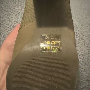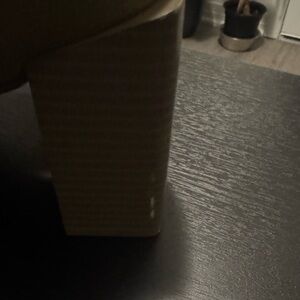 Chic tan heeled boots with ribbed detailing. Perfect for stylish outings. Used only mark is on the one side of heel as shown in picture Bottom of shoe is just gently used not worn down