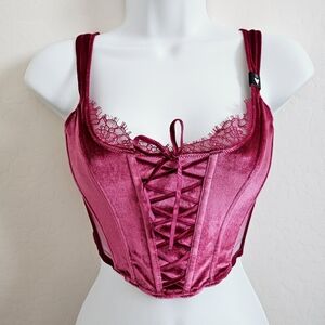 🆕️Victoria's Secret Dream Angels Unlined Lace up Velvet Corset Top XS
