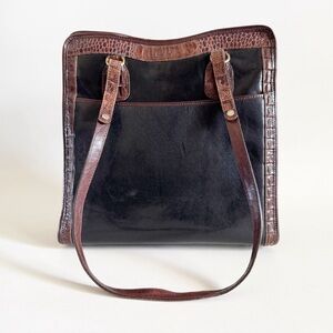 Vintage Brahmin North South Leather Satchel Bag Black Brown Classic Minimalist