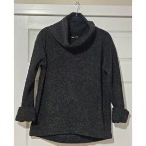 Ivory or cream colored short sleeve sweater, with a boxy fit.