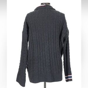 NWOT: POL Navy Striped Detail Chunky Cable Knit Chenille Cardigan Sweater•Large