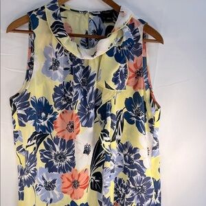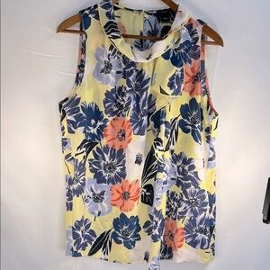 Ann Taylor Factory Floral Ruffled Sleeveless Blouse - Yellow, Blue, Coral
