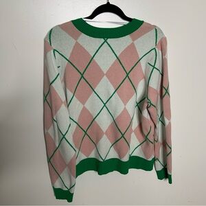 Torrid Green Pink White Argyle Cardigan Golf Outfit Soft Long Sleeve 1X