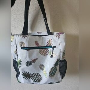 Esvan Floral Water Resistant Large Tote Bag Shoulder Bag White Pineapple.