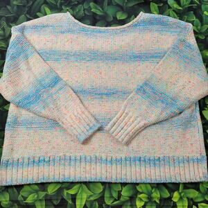 Anthropologie White Pastel Fleck Sweater with Hot Pink Palm Trees size 1X