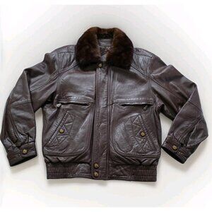 Santa Barbara Polo Racquet Club Leather Jacket Men 50 Brown LS Equestrian Vtg