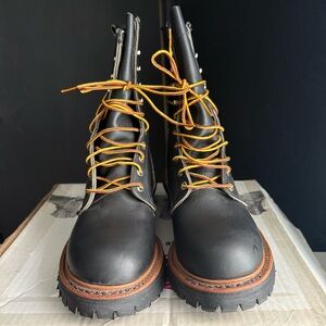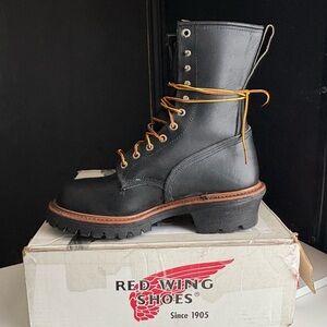 Deadstock new never used only stored red wings leather logger lace up boot made in USA vintage 2000’s